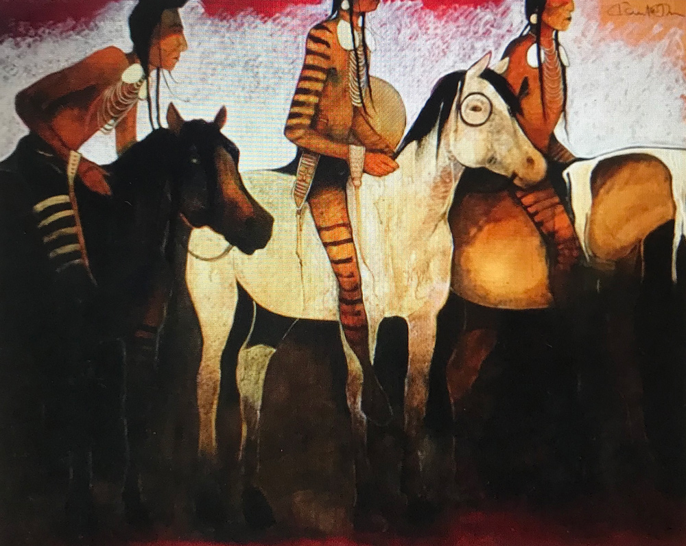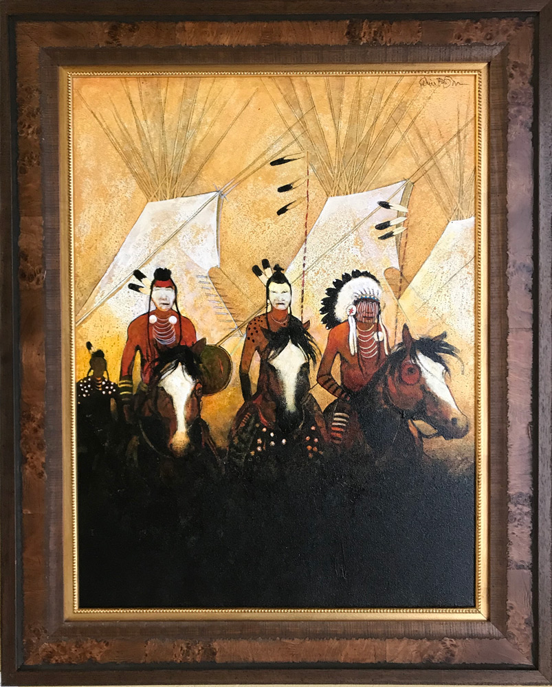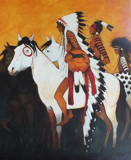 Collected Paintings These are recently sold paintings by Kevin Red Star. Click image to see enlargement. Big DayAcrylic on Canvas 24h x 20w Crow Indian Mother and Son Acrylic on Canvas 36 x 48 Spotted Tail Acrylic on Canvas 14 x 11 War Chief and Warriors Acrylic on Canvas 48 x 60 Big Thunder Storm30 x 24 Oil on Canvas Crow Fair Parade Riders48 x 60 Oil on Canvas Crow Indian Man and Crow Woman72 X 48 Mixed Media on Canvas Crow Indian With Eagle Feather Fan40 X 30 Mixed Media on Canvas Eagle with Feather Headdress36 X 36 Mixed Media on Canvas Heading Home20 x 24 Mixed Media on Canvas Indian Family Night Camp34 X 44 Mixed Media on Canvas Little Hawk10 x 8 Mixed Media on Canvas Midnight Camp with Visitors34 x 44 Mixed Media on Canvas Night Guard20 x 24 Mixed Media on Canvas Night Lodge 111 X 14 Mixed Media on Canvas Night Lodge 211 x 14 Mixed Media on Canvas Rain in the Face40 X 30 Mixed Media on Canvas Red Cloud30 X 40 Mixed Media on Canvas Spotted Tails War Party60 X 48 Oil on Canvas Spotted Wolf60 x 48 Oil on Canvas Three Friends Full Moon20 x 24 Mixed Media on Canvas Turnip Woman10 x 8 Mixed Media on Canvas River Crow Head ChiefAcrylic on Canvas 61 x 49 framed Small Works on Paper Abstract Plains Indian TipiAcrylic on Canvas 48 x 60 Crow Indian Ponies - Buffalo RunnersAcrylic on Canvas 30 x 24 Crow Indian Warrior Acrylic on Canvas 24 x 22 Star Person ShieldAcrylic on Canvas 18 x 24 The ChargeAcrylic on Canvas 48 x 60 Horse Lodge Acrylic on Canvas 40 x 30 Three Raven - Crow Indian War Horse Acrylic on Canvas 30 x 24 War Council - Crow Indians Acrylic on Canvas 24 x 30 Bear Medicine Victory Dance Acrylic on Canvas 60 x 48 Black Wolf Acrylic on Canvas 30 x 40 Crow Indian WarriorsAcrylic on Canvas 60 x 48 Pretty Shawl's Red Mountain Tipi Acrylic on Canvas 48 x 72 Running Horse's Tipi Acrylic on Canvas 8 x 10 Spotted Horses Acrylic on Canvas 8 x 10 Tipi #17 Acrylic on Canvas 10 x 8 Tipi #20 Acrylic on Canvas 10 x 8 Two Horse Tipi Acrylic on Canvas 24 x 30 War Paint Acrylic on Canvas 40 x 30 Yellow HawkAcrylic on Canvas 24h x 30w Absalooka Crane Medicine ShieldAcrylic on Canvas 18h x 24w Evening TipiAcrylic on Canvas 14h x 14w Red WingAcrylic on Canvas 20h x 20w Three Absalooka SistersAcrylic on Canvas 24h x 18w White BirdAcrylic on Canvas 20h x 16w Big Hail Storm Acrylic on Canvas 60 x 48 inches Blackbird Medicine Man Acrylic on Canvas 20 x 20 inches Buffalo Fur Hat Acrylic on Canvas 11 x 14 inches Buffalo Medicine Crane Giclee on Watercolor Paper 32 x 38 inches Framed Buffalo Skull Shield Acrylic on Canvas 24 x 20 inches Crow Indian Buffalo Tipi Acrylic on Canvas 8 x 8 inches Crow Indian Scout Acrylic on Canvas 21.5 x 21.5 inches framed Crow Spirit Ponies Original Hand-pulled Lithograph 58 x 47 inches framed Dark Horse Acrylic on Canvas 24 x 20 inches Evening Parade Rider Giclée 31 x 36 inches framed Four Warrior Ponies Acrylic on Canvas 24 x 30 inches Home Acrylic on 300# Paper 18.5 x 16 inches framed Horse Study Acrylic on Canvas 36 x 46 inches Jack Rabbit Runs - Crow Indian Man Acrylic on Canvas 36 x 48 inches Little Hawk Acrylic on Canvas 13 x 11 inches framed Night Riders Giclée 36 x 30.5 inches framed Red Bird Acrylic on Canvas 48 x 60 inches Spring Time Acrylic on Canvas 72 x 48 inches Sun Chief Acrylic on 300# Paper 20 x 18 inches framed The Small War Party Acrylic on Canvas 49 x 61 inches Two Arrows Acrylic on Canvas 11 x 14 inches Sundancers - Eagle Breath Whistles Acrylic on Canvas 60 x 48 Crow Indian Warrior - Medicine Man Healer36 X 36 Mixed Media on Canvas Old Indian Warrior - Tells Stories of Long Ago48 X 36 Mixed Media on Canvas Elder Vision Acrylic on 300# Water Color Paper 31 x 37 framed A Walk in the Moonlight 20 x 24 inches Afternoon Crow Lodge Acrylic on Canvas 15 x 12 inches framed Bear War Shield - Crow Indian Shield Acrylic on Canvas 24 x 29 inches Beartooth Mountain Shield Acrylic on Canvas 23 x 19 inches framed Big Dog Acrylic on Canvas 20 x 20 inches Blackfeet Tipi Acrylic on Canvas 24 x 30 inches Buffalo Gathering Shield Acrylic on Canvas 48 x 36 inches framed Chief of the Sun Lodge Acrylic on 300# Paper 18 x 20 inches framed Crazy Dog Warrior - Crow Indian Man Acrylic on Canvas 20 x 24 inches Crow Girl Parade Rider Acrylic on Canvas 30 x 40 inches Crow Indian Style Tipi Acrylic on Canvas 68 x 56 inches framed Crow Indian Tipi in Full Moon Mixed Media on Canvas 48 X 60 inches Crow Indian Tipi's Acrylic on Canvas 12 x 12 inches Crow Indian Warriors Mixed Media on Canvas 60 X 48 inches Crow Indians on the High Plains Acrylic on Canvas 50 x 62 inches framed Crow Indians Ready for the Charge Mixed Media on Canvas 48 X 60 inches Crow Man on War Horse Acrylic on Canvas 60 x 48 inches Crow Tipis on the Big Horn Mixed Media 24 x 30 inches Dakota Tipi Acrylic on Canvas 30 x 24 inches Dusk Acrylic on Canvas 20h x 20w inches Eagle Feather Shield Acrylic on Canvas 24 x 20 inches Fall Tipi Acrylic on Canvas 10 x 8 inches Good Horse's Tipi Acrylic on Canvas 48 x 36 inches Hits The Elk Acrylic on Canvas 20h x 20w inches Lighting Storm Acrylic on Canvas 20 x 20 inches Mad Buffalo Shield - Crow Shield Acrylic on Canvas 16 x20 inches Mountain Crow Ponies Acrylic on Canvas 24 x 20 inches Mountain Crow Shield - Crow Indian War Shield Acrylic on Canvas 37 x 37 inches framed Night Camp Acrylic on Canvas 8 x 10 inches Painted Northern Plains Style Tipi Acrylic on Canvas 24 x 30 inches Small Crow War Party Oil on Canvas 60 X 48 inches Sundown's Medicine Tipi Giclee 26 x 20 inches Sweet Grass Mixed Media 21 x 26 inches The Mountain Crow Indians Northern Plains Indians Acrylic on Canvas 29 3/4 x 24 inches framed Three Horse Shield Acrylic on Canvas 22 x 24 inches Tipi #18 Acrylic on Canvas 10 x 8 inches Untitled II & III Acrylic on Paper Absalooka Crane Medicine ShieldAcrylic on Canvas 18 x 24 Abstract Crow TipiAcrylic on Canvas 48 x 72 Abstract Crow Tipi Acrylic on Canvas 48 x 72 Abstract Tipi #7Acrylic on Canvas 48 x 60 Antelope People Mixed Media on Canvas 24 x 20 Bear Medicines Victo